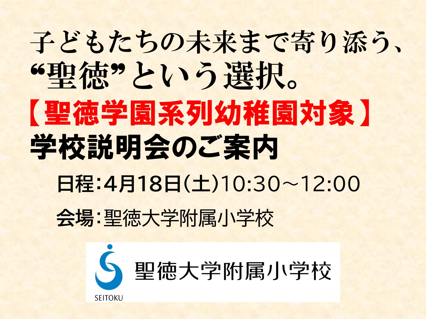 【聖徳学園系列幼稚園対象】4月18日(土)学校説明会のご案内