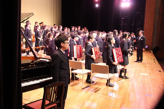 ・みんな一生懸命練習をしていて、「これなら本番もきっと大成功だ!」と思うことができました。そして本番、私は楽しみでたまりませんでした。発表が終わった時、私は「完璧にできた!」と思い、なみだが出そうでした。家に帰る時、父と母に「本当に上手だった。感動したよ!」と言ってもらえて、とてもうれしかったです。来年は、卒業演奏でもっと両親を感動させたいと思いました。(5年)