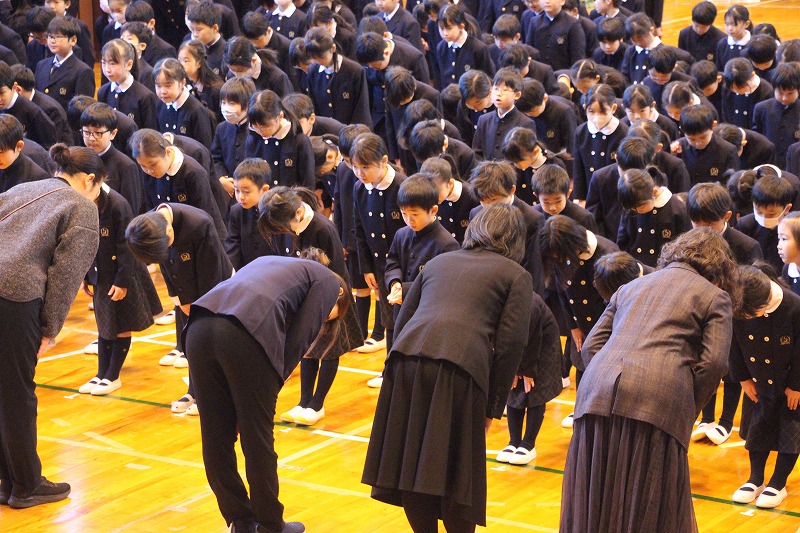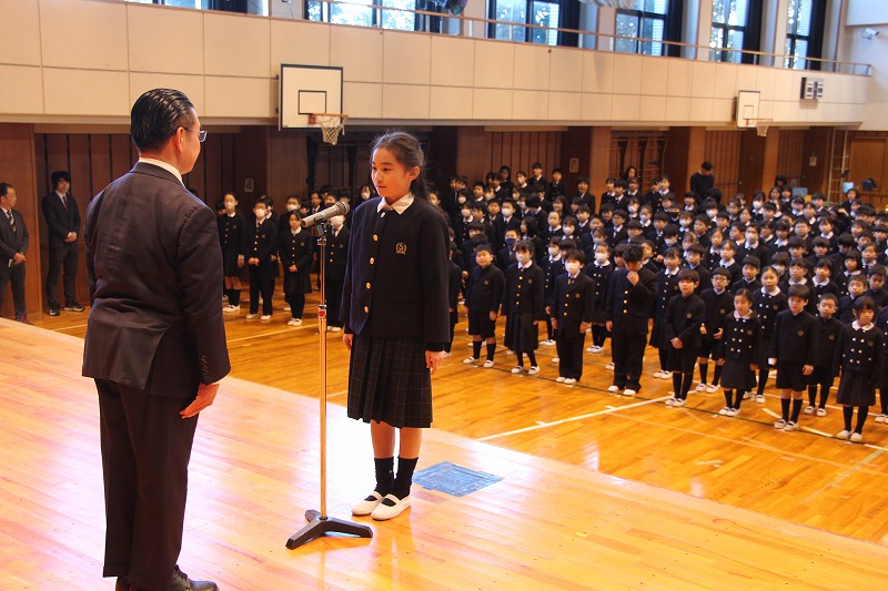 また、始業式の前に、新しく「聖徳の子」に仲間入りする転入児童を迎える式も行いました。この3学期より、1名の新しい仲間を迎えることになりました。緊張しながらも、「よろしくお願いいたします。」としっかりご挨拶ができ、大変立派でした。一日も早く新しい学校生活に慣れるよう、皆でサポートしてまいります。