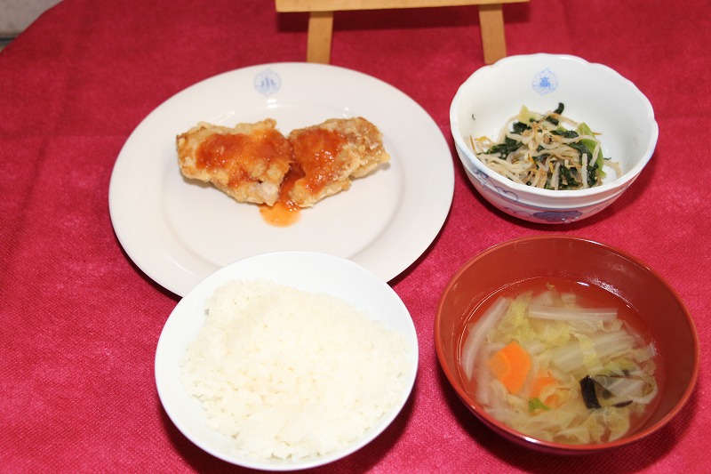 「甘酸っぱ辛い」味わいが特徴のチリソース。でも本校のチリソースは、子ども向けに全く辛くありません。思わず笑顔がこぼれる聖徳の「揚げ鶏のチリソース」。厨房で揚げています。ぜひ一度、ご賞味ください。