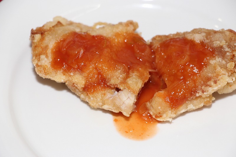 最後に料理の要となる「チリソース」で締めくくります。これにより、揚げ鶏に甘みと旨みを添える、絶妙な組み合わせであることが明確になります。