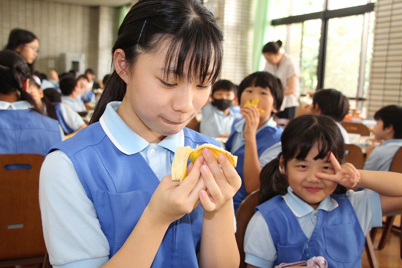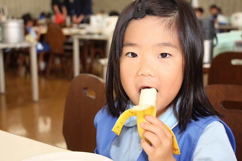 そして今日のお楽しみは、デザートの「バナナ」。バナナを食べている時の子どもたちの表情は、みな嬉しそうです。