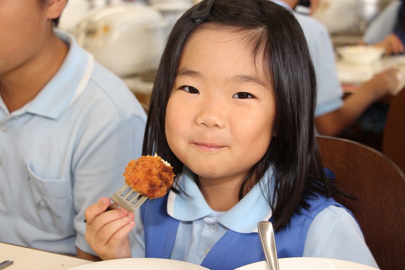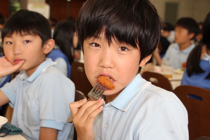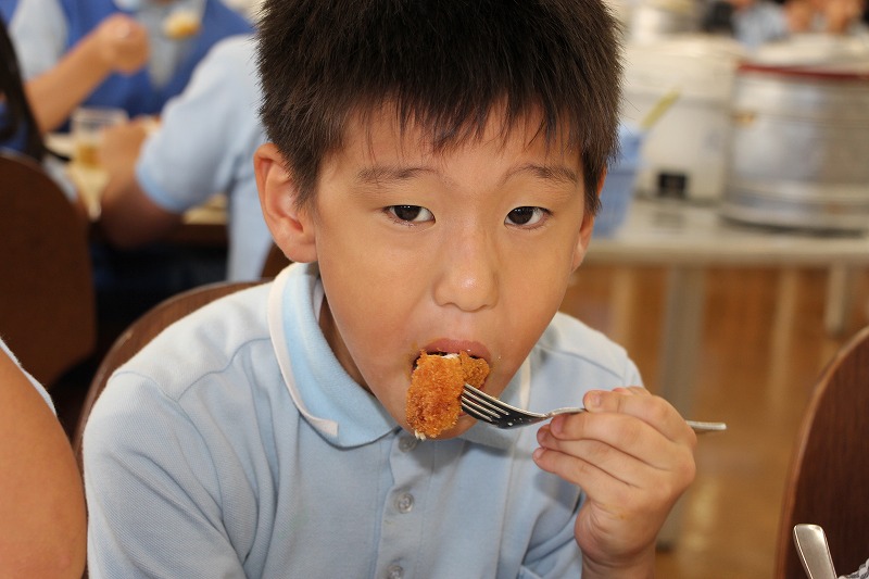 チキンカツをいただく時の、子どもたちの嬉しそうな表情。
