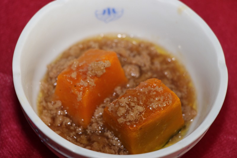 今日取り上げるのは「南瓜(かぼちゃ)のそぼろあんかけ」です。ほっくりとした南瓜と、ほんのり甘いそぼろあんかけの組み合わせは、心まで温まる美味しさ。思わずお代わりしたくなる一品でした。