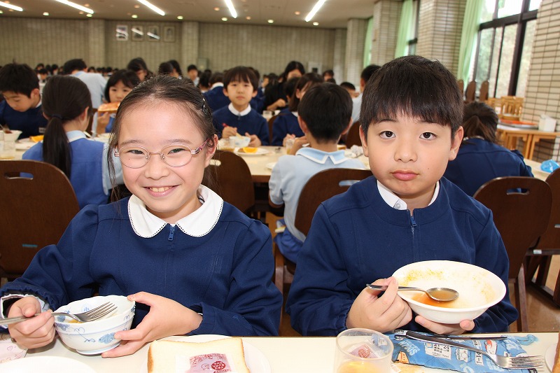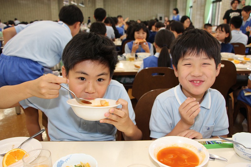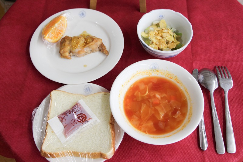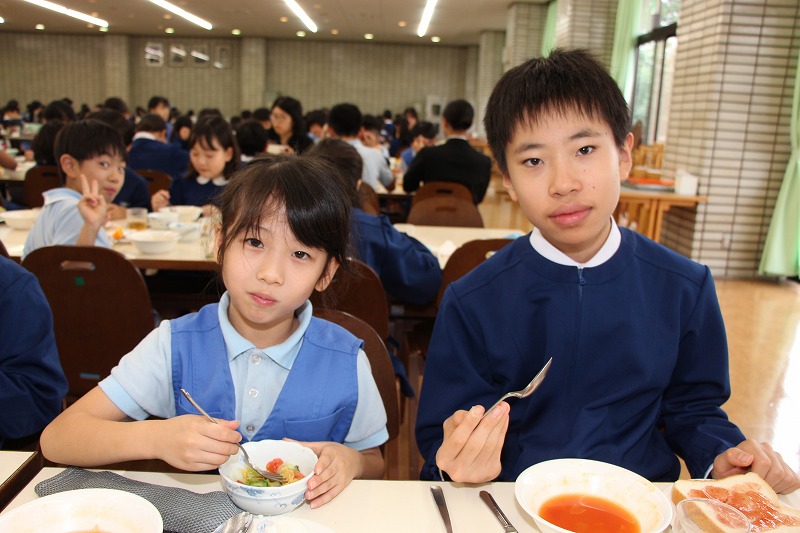 ソースが照りよく絡んだ鶏肉は、ふっくらと焼き上がっていて、口に入れると満足そうに頷く子が続出しました。こんな会食をいただける「聖徳の子」たちは、幸せだと思います。