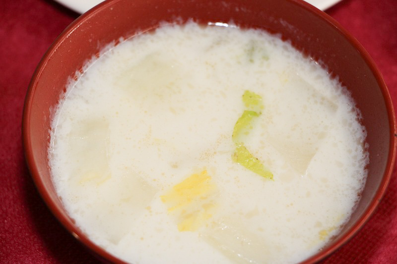今日注目したいのは、「白菜の中華風ミルクスープ」です。牛乳たっぷりのスープで、カルシウムも摂れます。