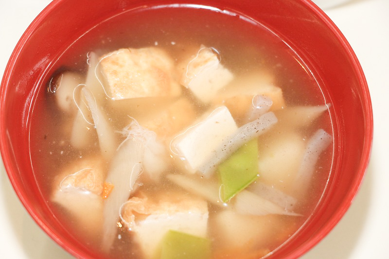 また、本日の献立のうち、特に目を引いたのは具だくさんの「のっぺ汁」です。厚揚げ、里芋、人参、ごぼう、こんにゃく、椎茸、さやえんどうといったさまざまな具材が、和の滋味深さを感じさせる味わいをつくりあげていました。