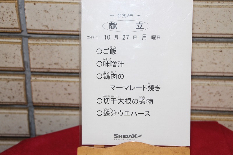 今日の会食は、焼き色がついた表面の照りも美しく、まさに子どもが笑顔になるごちそう「鶏肉のマーマレード焼き」でした。