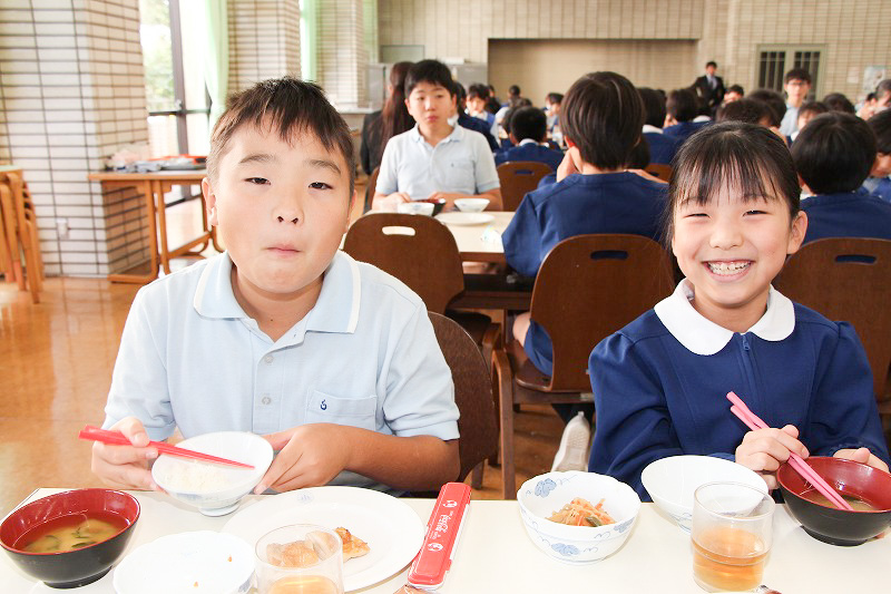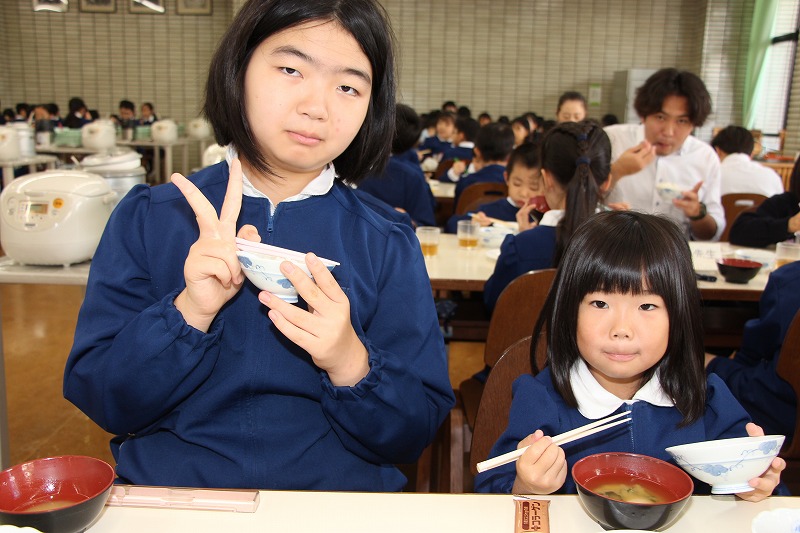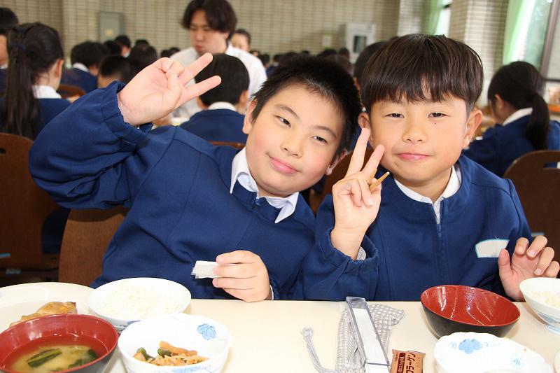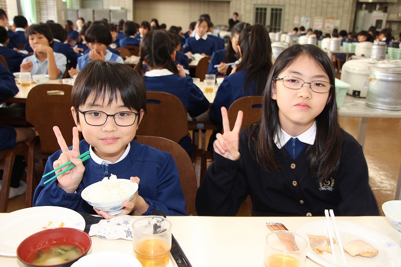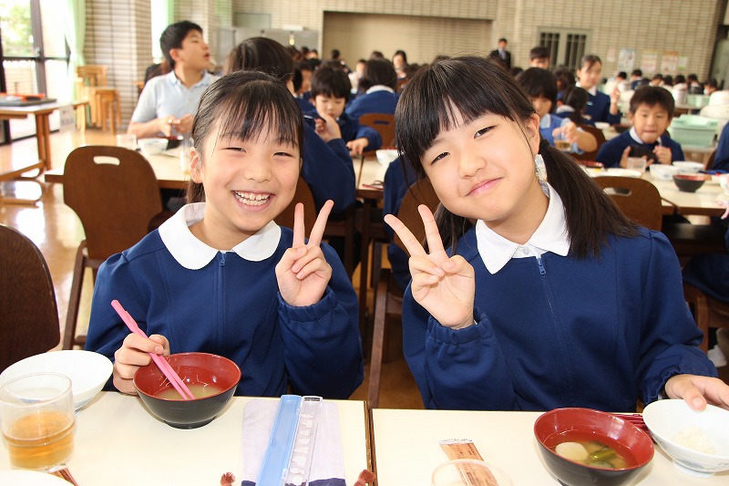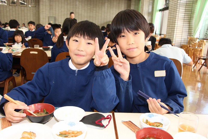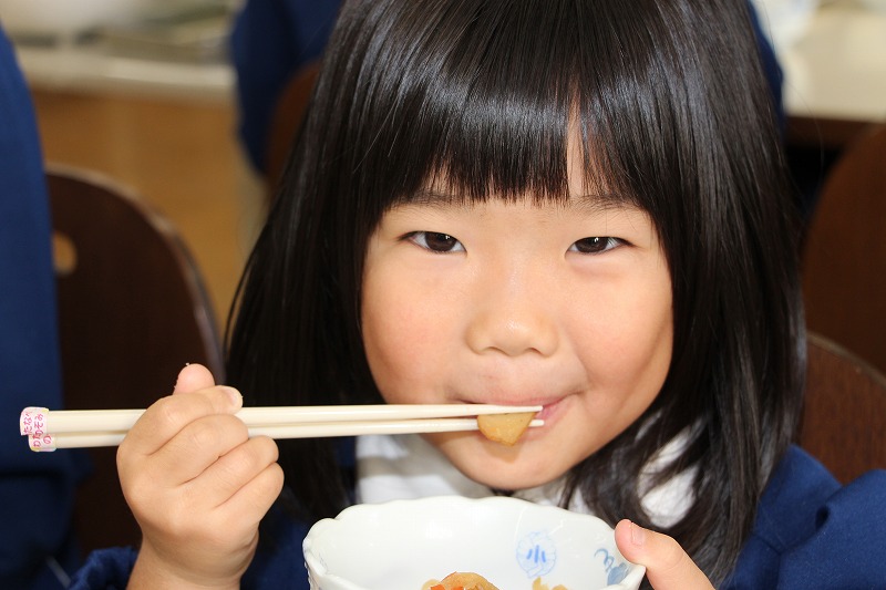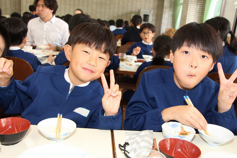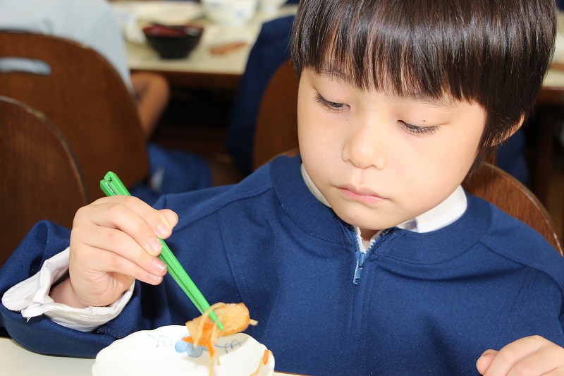 主菜は洋風、副菜は和風の和洋折衷会食を、おいしそうにいただく「聖徳の子」の姿が見られました。
