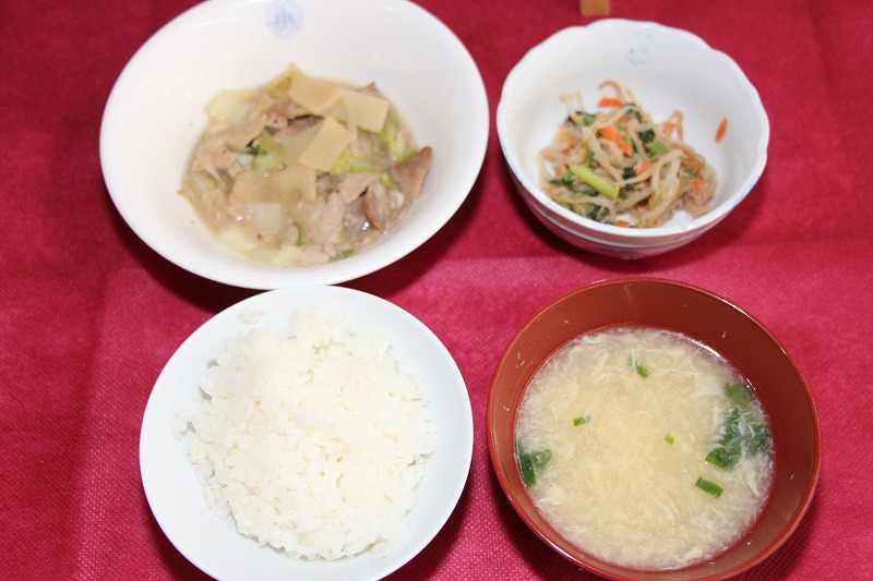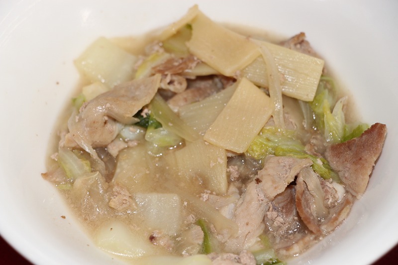 今日の会食は、一口食べればご飯が止まらない、ホッとする美味しさが魅力の「豚肉と白菜の中華うま煮」でした。