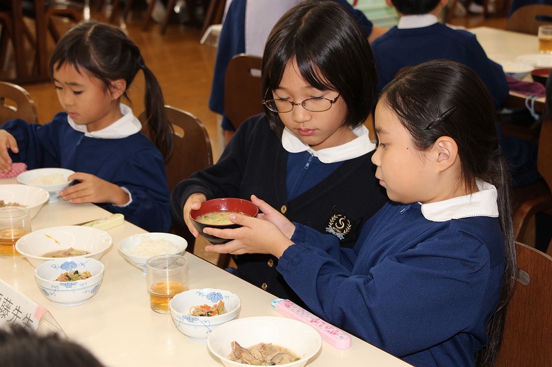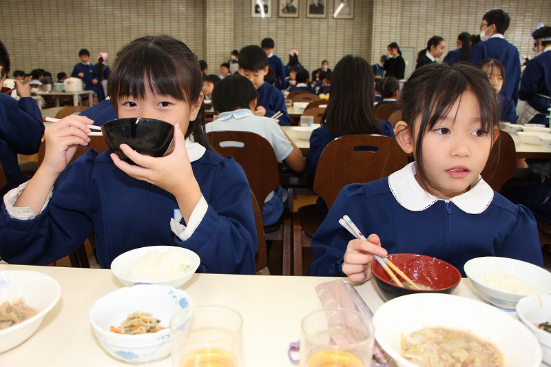 中華風会食を、おいしそうにいただく「聖徳の子」の姿が見られました。楽しい会話と笑顔があふれる中で、食の恵みに感謝しながら味わっていました。