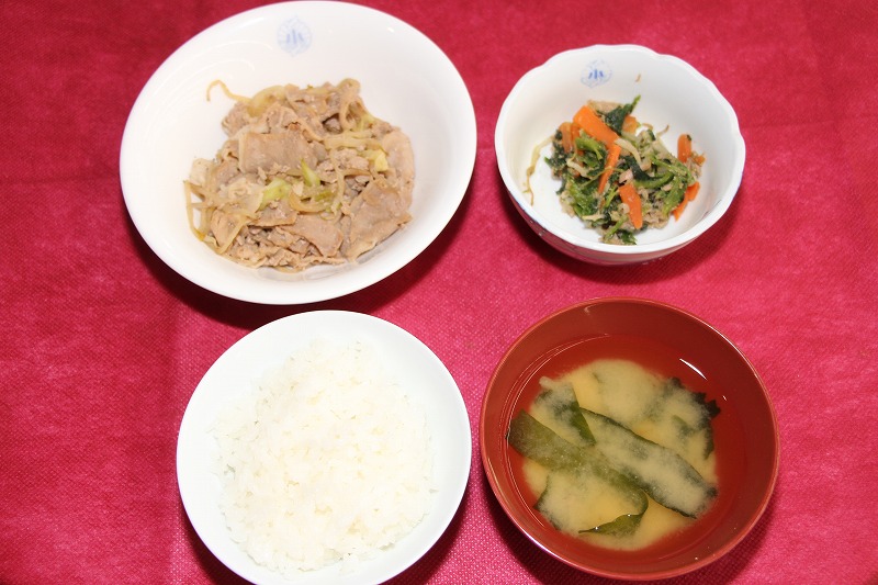 今日の会食は、食欲をそそる日本の定番の味「豚肉と野菜の生姜焼き」でした。スタミナをつけたいときにピッタリな一品です。これさえあれば、ご飯が何杯でもいただけそうです。