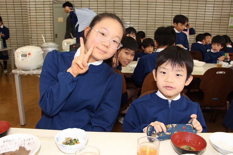 高学年が美味しそうに生姜焼きを食べる様子を見て、「お兄さん、お姉さんと同じように食べたい」と、苦手な野菜にも挑戦してみる「聖徳の子」たちでした。
