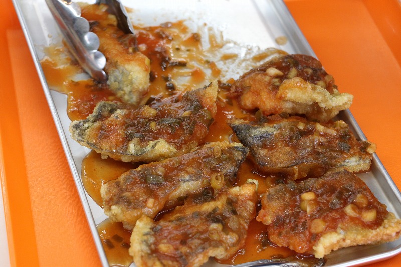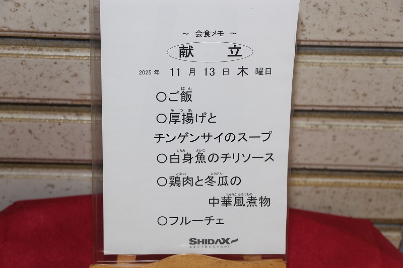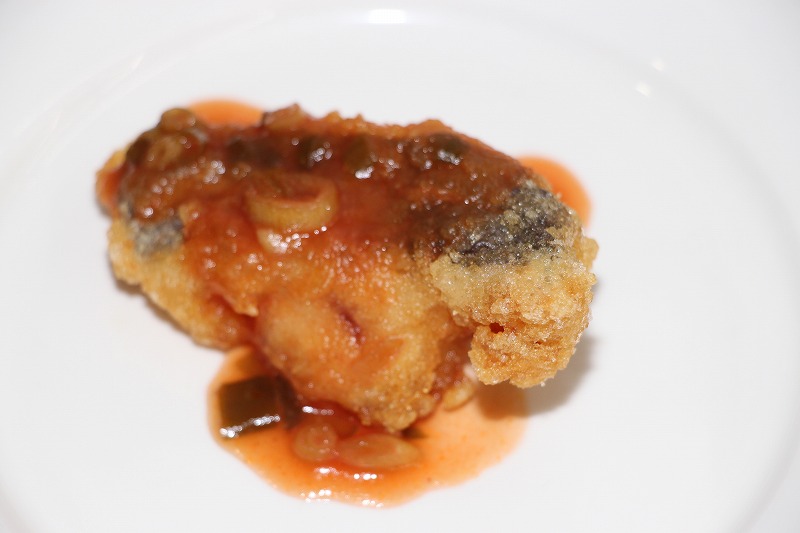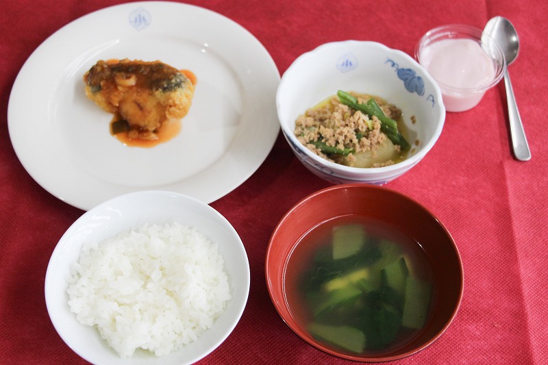 今日の会食は、子どもたちが残さず美味しく食べられるよう、辛味を極限まで抑えたマイルドな中華風味の「白身魚のチリソース」でした。