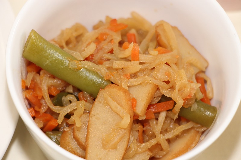 切干大根は、天日干しにより食物繊維、カルシウム、鉄分が生の大根より大幅に濃縮されているそうです。腸内環境を整え、骨を丈夫にし、貧血や高血圧予防に効果的な、非常に健康に良い食材だそうなので、家庭でも利用したいと思います。