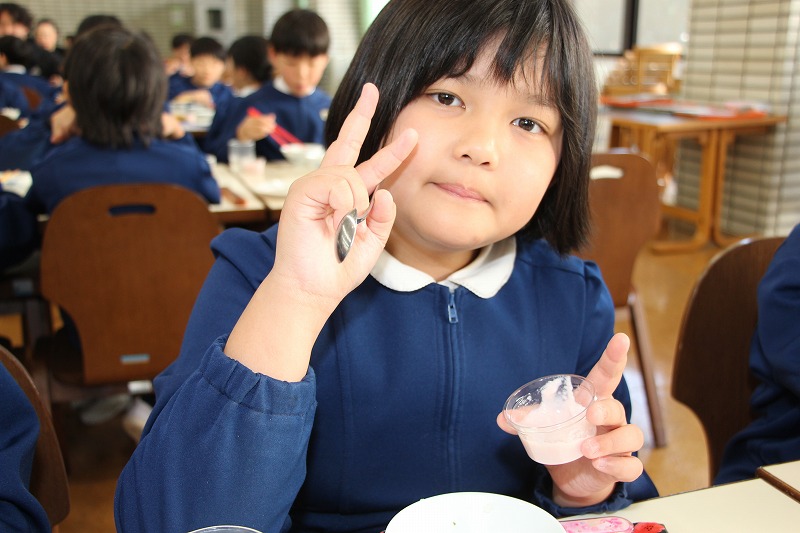 今日のデザートは、子どもたちに大好評の「フルーチェ」でした。