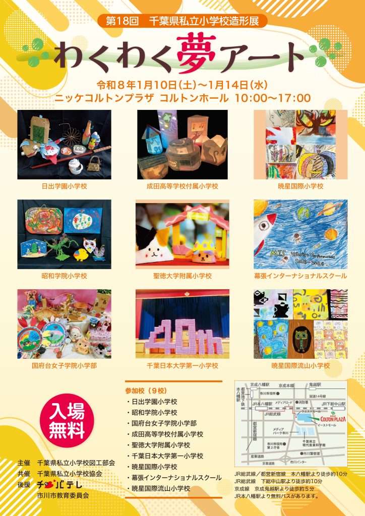 令和8年1月10日より、ニッケコルトンプラザ(千葉県市川市)にて「第18回 千葉県私立小学校造形展」が開催されます。